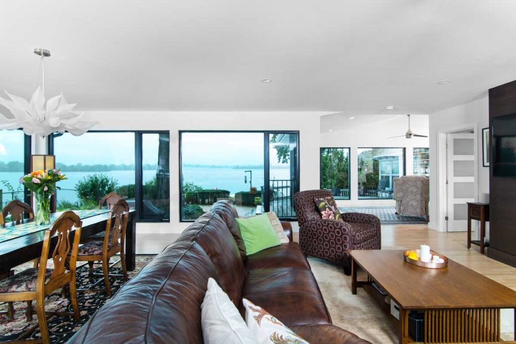 This home exquisitely blends contemporary and midcentury styles, while maximizing the incredible view of the water.