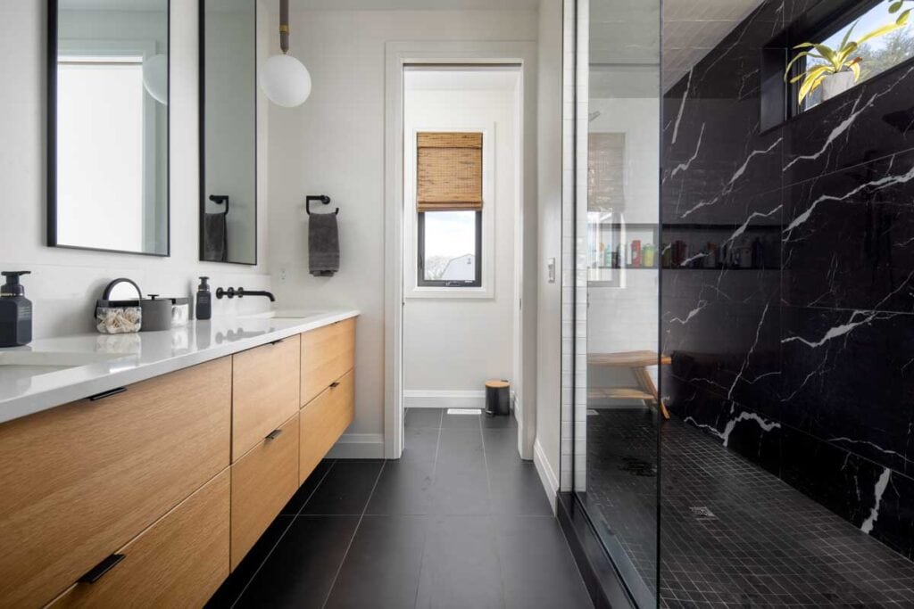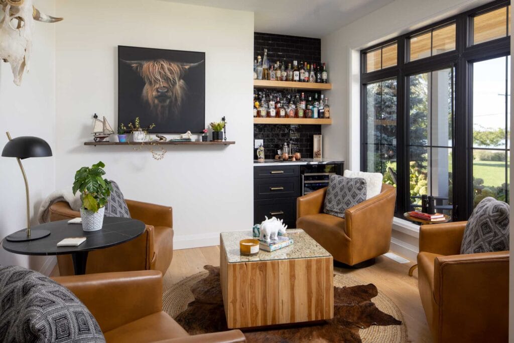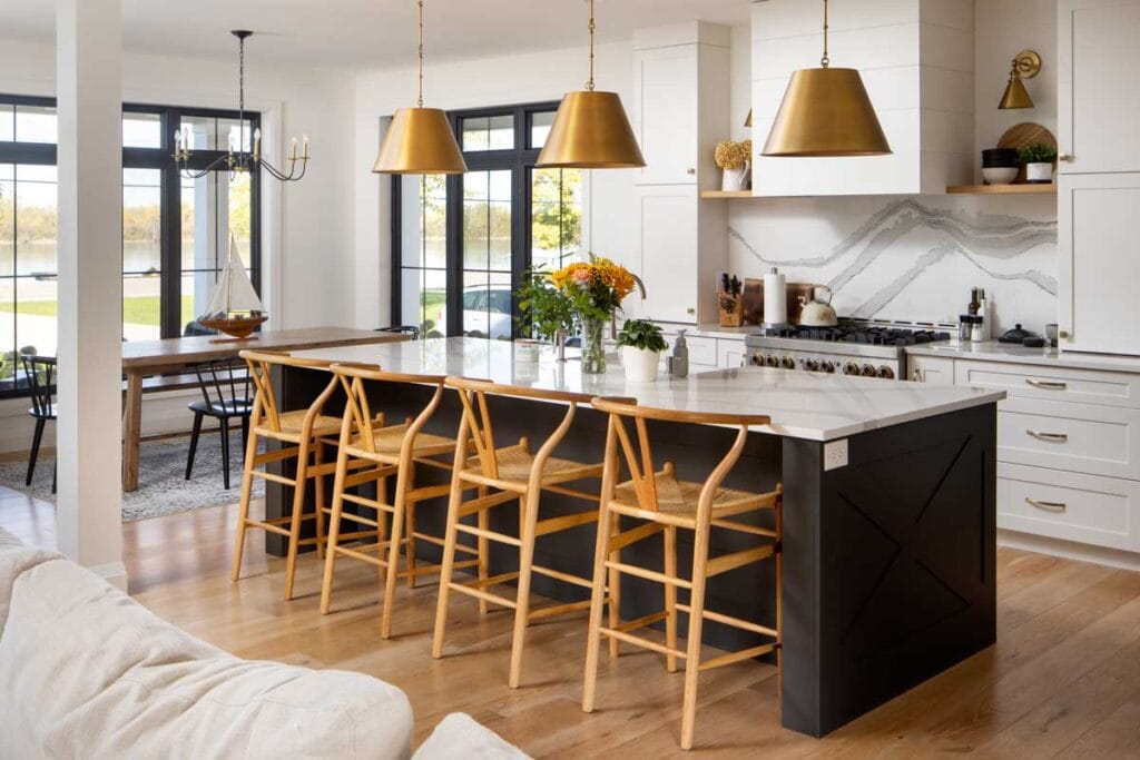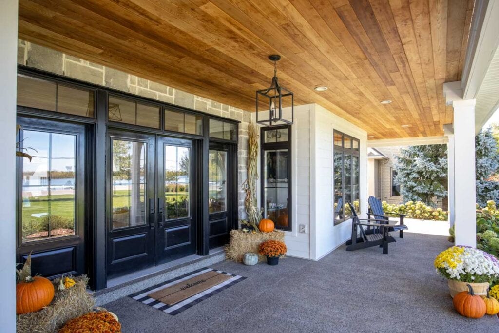 This modern, one and a half storey country home is built to maximize the property’s waterfront view; the landscape and home meet each other as good friends at the massive covered porches. Inside, the homeowners envisioned a welcoming, rustic, and warm home, with lots of room for family and entertaining.