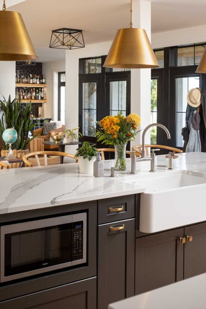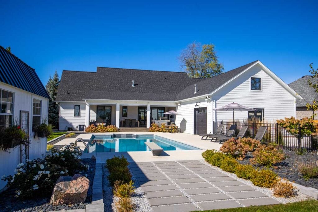 Outside offers even more space for guests; the beautiful pool area and waters edge offer an exquisite backdrop. The owners turned this exciting project into a home.