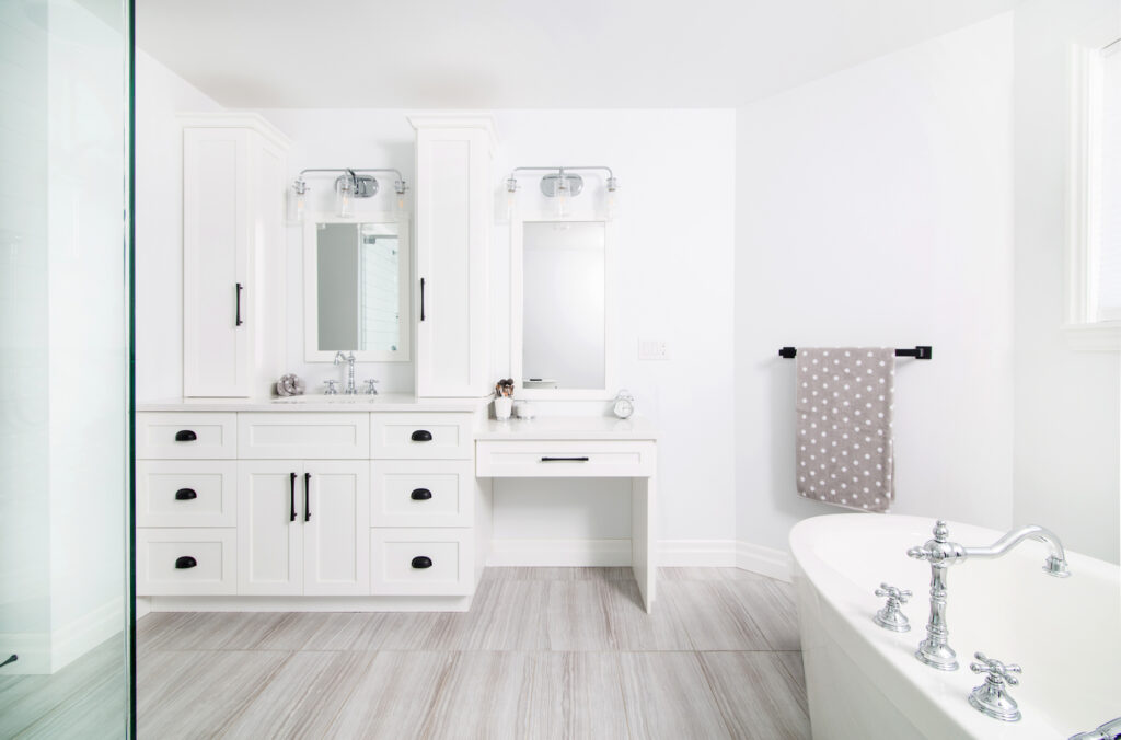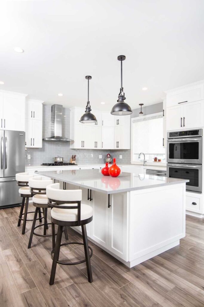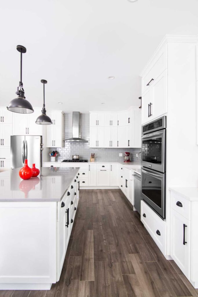 The expansive and bright kitchen serves as the heart of this home – a space to host large family gatherings and make memories. There is beautiful contrast between bright and deep finishes throughout the home.