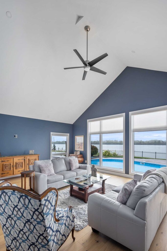 This Amherstburg waterfront renovation was an extraordinary undertaking, resulting in a truly show-stopping home. One of the most significant hurdles was the extreme grading differential between the roadside and the water’s edge.